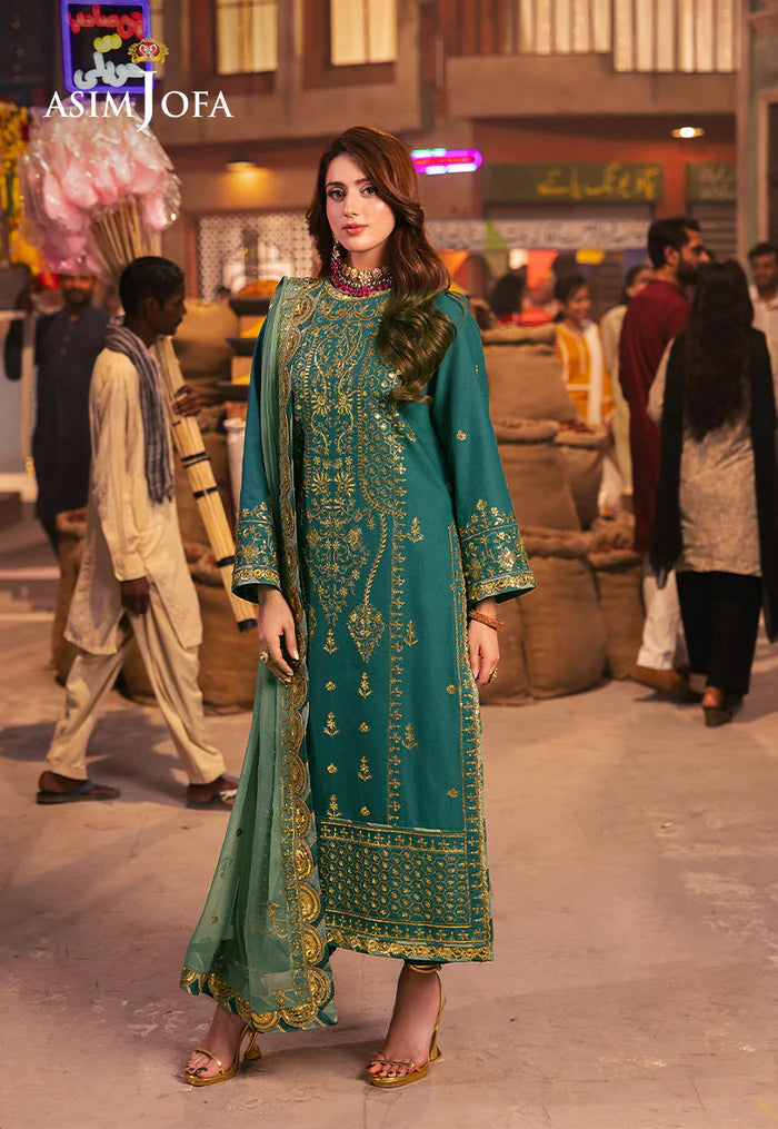 Emerge from the emerald embrace of the forest, a vision blooming with the essence of nature's timeless beauty in this dark green ensemble. The intricately embroidered shirt is adorned with dual-toned antique gold zari, shimmering like sunlight dappling through leaves. Scattered gold cupped sequins, like fireflies dancing in the twilight, add a touch of ethereal magic. Paired with an airy dupatta, a wisp of green echoing the ensemble's theme, this outfit is not just celebratory attire, but a serenade sung by the wilderness itself.